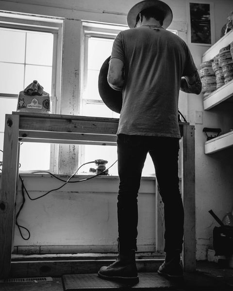 At Three Horses Hat Co., we hand-shape our hats. After sanding, dying, and distressing, we cut and shape the crown and brim by hand from start to finish. This allows us to make a completely-custom hat and keeps us connected to our craft and to the tradition of hat-making that came before us.